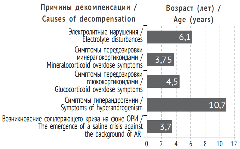 Severe disease decompensation that requires urgent hospitalization is usually due to the addition of respiratory infections with insufficient adjustment hormonal drug doses and a deficiency of mineralocorticoids. More often, a similar situation is noted in children of early and preschool age.