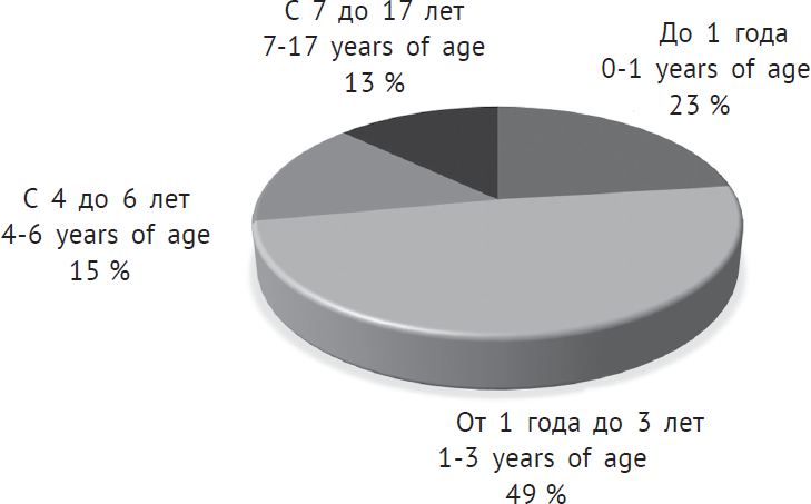 Рис. 2. Возрастная структура детей с вирусными поражениями желудочно-кишечного тракта