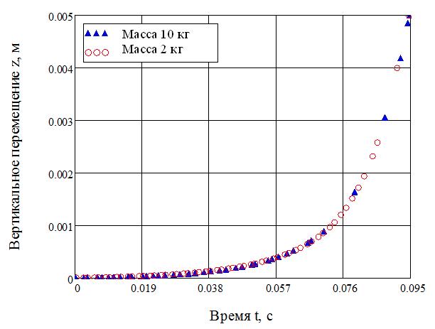 В ходе проведения расчетных экспериментов установлено, что обобщенный объект управления, также как и исходный, является неустойчивым. Выявлено важное свойство объекта исследований: параметры переходного процесса практически не зависят от массы груза. Например, на Рис. 5 показаны графики переходных процессов.