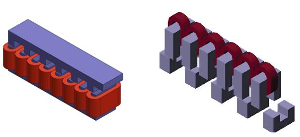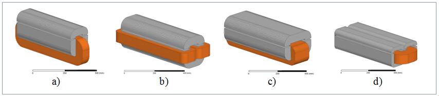 Исследование влияния конфигурации магнитной системы «статор – путевой элемент» на расход электротехнической стали в путепроводе показали, что выбор конфигурации зубцовой зоны двигателя по существу определяет его главные размеры. Это ограничивает возможные вариации геометрическими размерами. В рамках этих ограничений возможен только выбор формы и размеров поперечного сечения магнитопровода (U-образного и Ш-образного сечения), а также расположение обмоток на магнитопроводе.