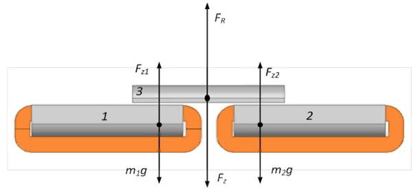 Стабилизация платформы достигается за счет координации управления между автономными взаимосвязанными контурами регулирования сил левитации и тяги, расположенных по бортам платформы. Между контурами регулирования возникают связи, обусловленные механическим взаимодействием через конструктивные элементы транспортной платформы.