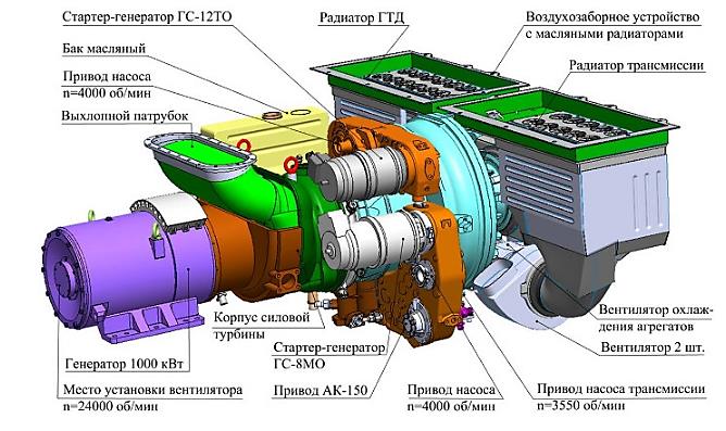 В отличие от объектов-аналогов в состав электротехнического комплекса включена газотурбинная энергетическая установка, генерирующая электрическую энергию для питания силовых цепей. Топология системы энергоснабжения позволяет функционировать транспортной платформе как в составе поезда по системе многих единиц, так и автономно.