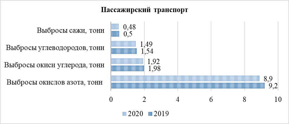 Рис. 3. Объемы выбросов от пассажирского ЖД-транспорта