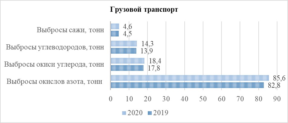 Рис. 4. Объемы выбросов от грузового ЖД-транспорта