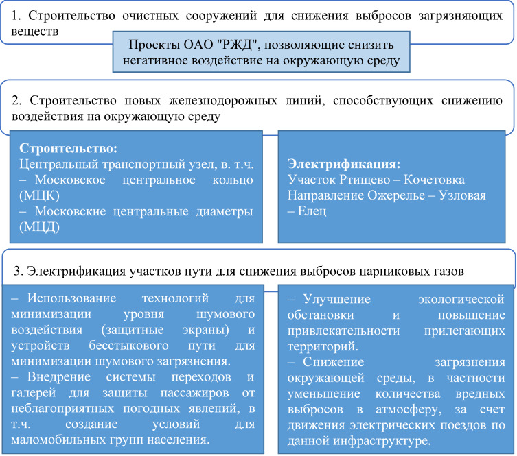 С целью сокращения отрицательного влияния железнодорожного транспорта на окружающую среду, Холдингом активно используются «зеленые» технологии при электрификации путевых линий, предназначенных для пассажирских перевозок. Экономический эффект от реализации энергоэффективных проектов составил более 2 млрд. руб. в 2019 г., что свидетельствует о лидирующих позициях, занимаемых ОАО «РЖД» в числе международных грузовых и пассажирских железнодорожных перевозчиков в части энергетической и экологической эффективности.