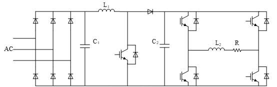 Current closed-loop feedback control is employed in the control the voltage source inverter for the special excitation system. The excitation winding of the motor is resistance-inductance load, thus high voltage is needed to produce the required wave current because of the large inductance of the excitation winding. Therefore, a boost circuit is designed in this excitation system. The topology structure of excitation source is shown in Fig. 4. L2 and R is the excitation winding load.