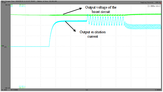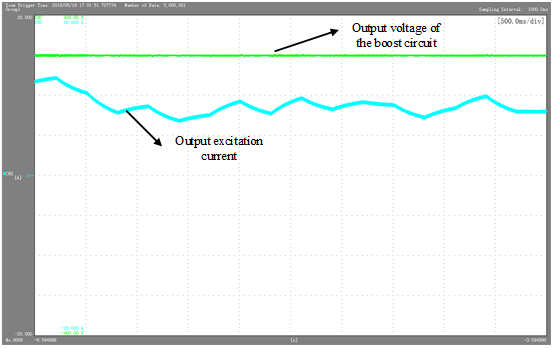 Fig. 7. Output voltage of the boost circuit and excitation current waveform