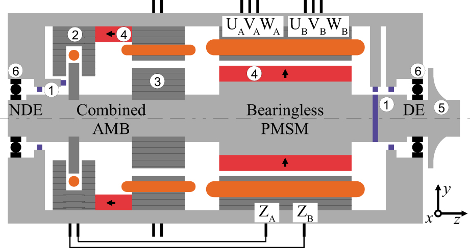 - Dietz D, Messager G, Binder A. 1 kW / 60000 min-1 bearingless PM motor with combined winding for torque and rotor suspension. IET Electric Power Applications. Forthcoming 2018. doi: 10.1049/iet-epa.2018.0013