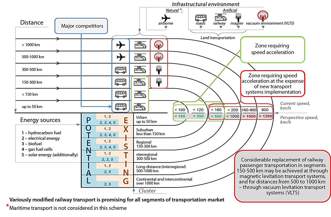 С учетом указанных факторов глобальными требованиями к перспективным транспортным системам становятся повышение скорости, безопасность, в частности экологическая, энергоэффективность, способность к гибкому обслуживанию пользователей и интеграция в мультимодальные транспортные системы.