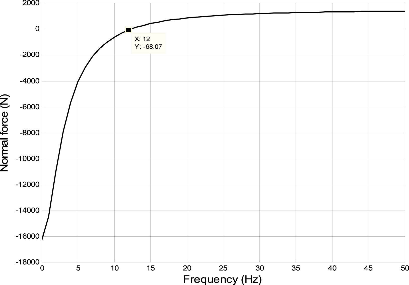 Set slip frequency as the independent variable and normal force as the dependent variable, the relation curve is show in Fig. 3. The figure shows that the normal force is very close to zero when slip frequency equals to 12 Hz. Hence, 12 Hz is selected as the reference slip frequency in performance calculation.