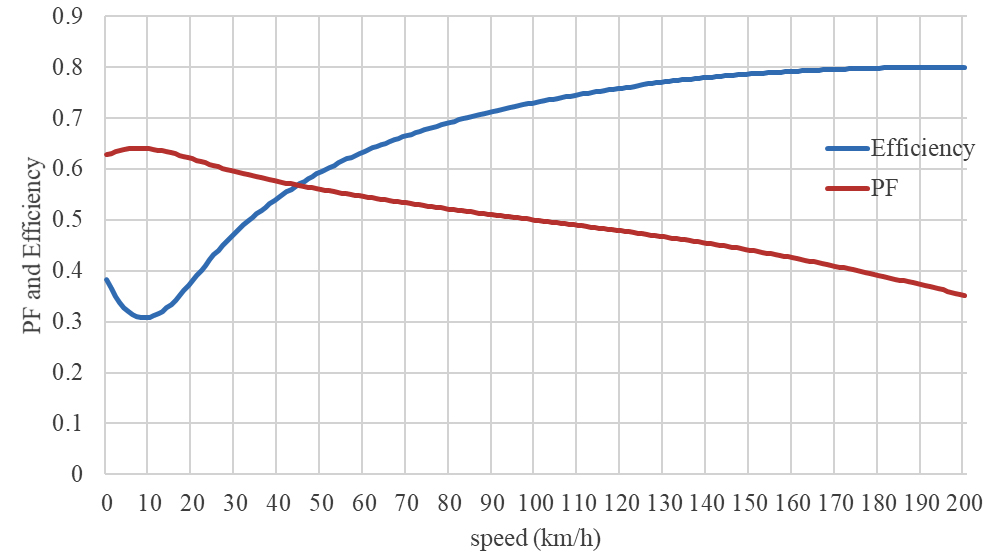 Fig. 5. Efficiency and PF of the SLIM at 2.0 pu