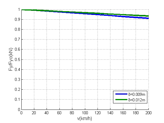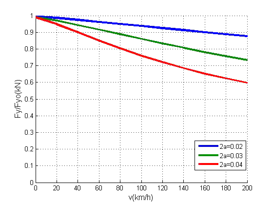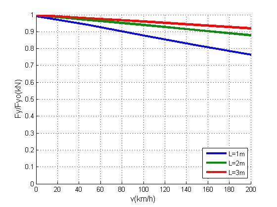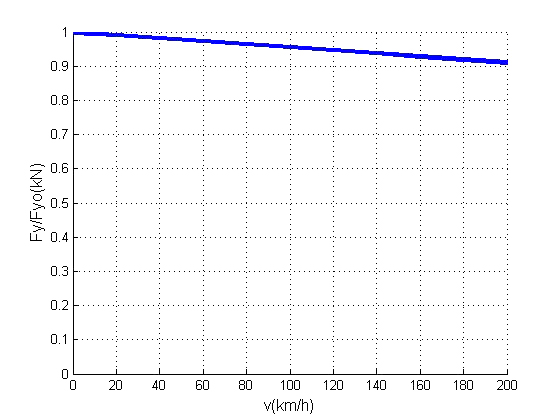 Speed, km/h | Levitation force, kN | Descent range, kN | Descent rate comparing to stationary, % |