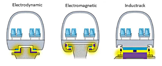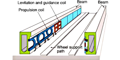 The EDS system stands for Electrodynamic Suspension and is used by the Japanese in the JR SCMAGLEV (Japan Railway). It refers to the magnetic repulsion that consists of the use of superconductive coils that create repulsive forces propelling the vehicle. The coils are located inside the train that create a strong magnetic field in connection with the ferromagnetic bars on the rails that levitate the vehicle.