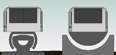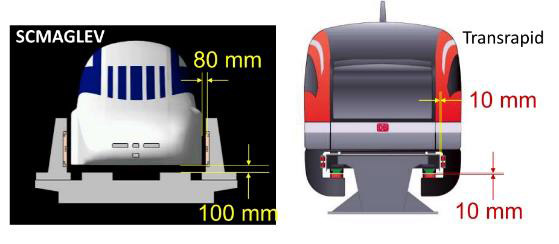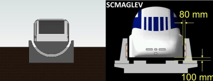 This system has a circular shape identical to the "U" shape that fits over the rail, such as SCMaglev. In the following image the differences between the two systems can be identified.