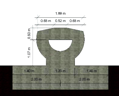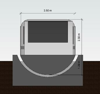 The following image shows a cross section of the rail system proposed and its dimensions. As this track is continuous and always has the same geometric characteristics makes it very easy to build, and high-performance pre-fabrication can be used for a quick and economical solution.