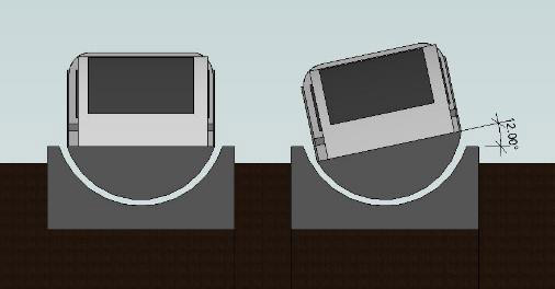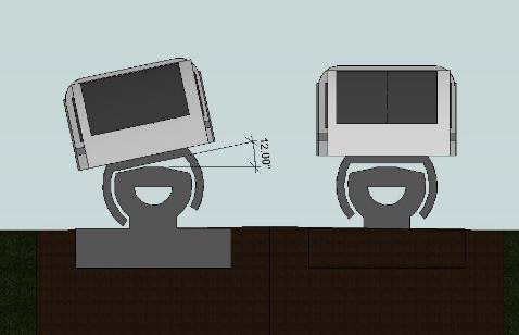 The configuration of the rail has characteristics that allow the vehicle to turn on the curved rail, with no static cant. In the following image it can see how the vehicle rolls on the rail at a maximum angle of 12º, but may be higher depending on the geometry defined for the claws and base support.