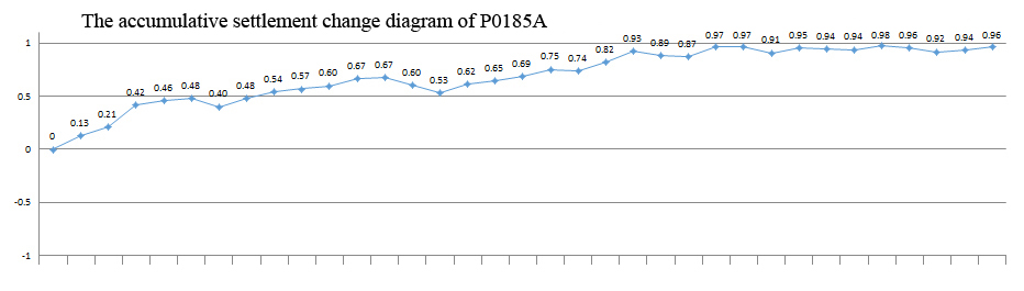 - According to the above correlation degree sequencing results, the construction parameters optimization and the sensitivity control are carried out. Meanwhile, combined with the measured results of deformation monitoring, the multi means parallel monitoring data are analyzed synthetically and the data are checked, and the construction parameters are adjusted reasonably to make the pier column deformation in the controllable permissible range, having ensured the safe operation of the maglev. Among them, the deformation curve of P0185A is shown in Fig. 3. The adjustment and optimization of construction parameters can control the deformation of pier columns in the allowable range according to the order of correlation.