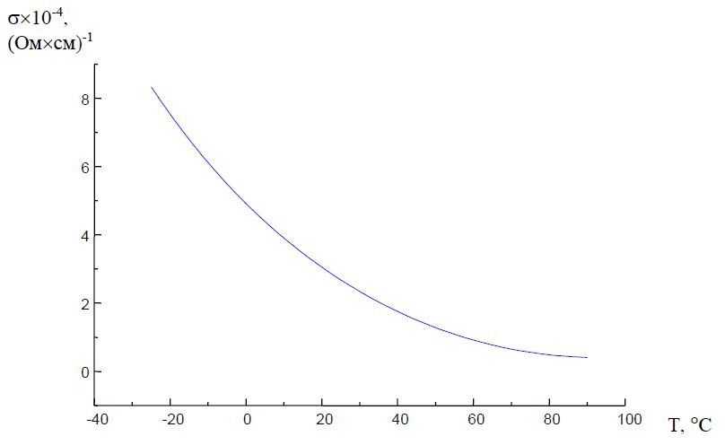 The specific conductivity value can be determined from the dependence presented in Fig. 2 [8] for the corresponding temperature of the sliding contact elements.