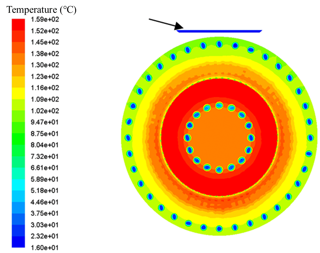图 6. 电机轴中心截面温度分布云图