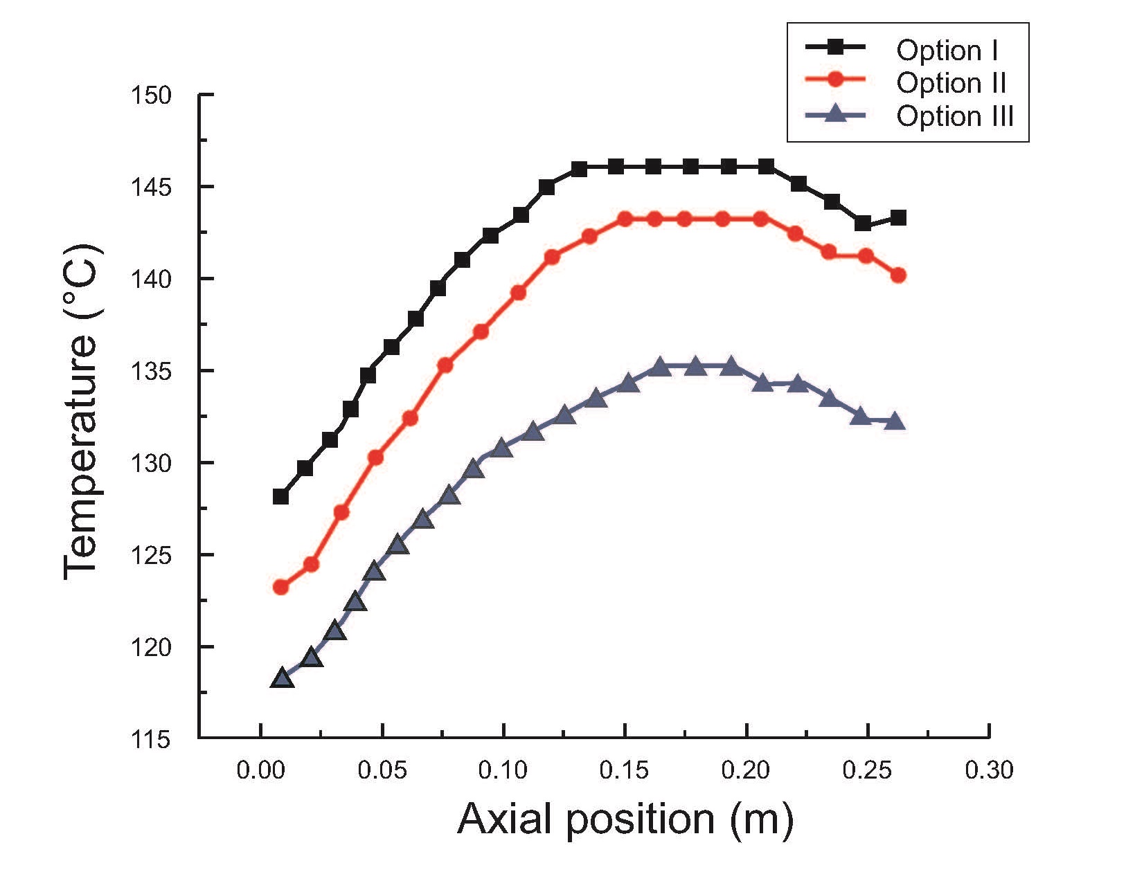 图 9. 定子绕组沿轴向温度分布曲线