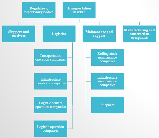 The market participants interact with each other in the issues relating to transport and logistics infrastructure, rolling stock and vehicles, resources, and raw materials. The market is regulated by regulatory framework, which determines its development and peculiar features of operational activity [7, 8].