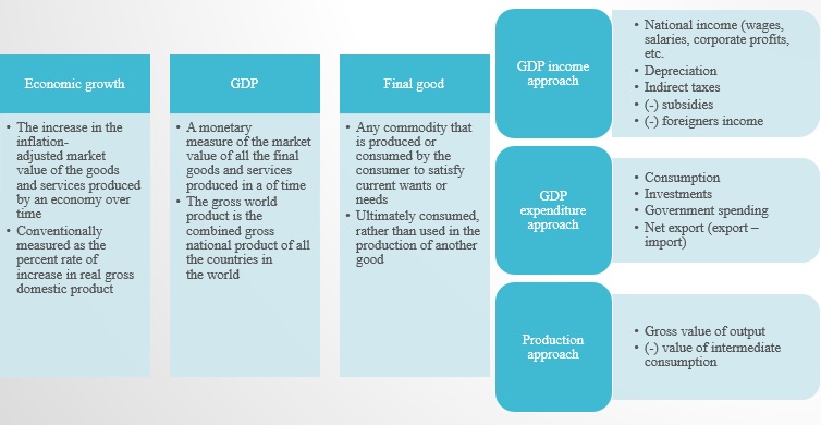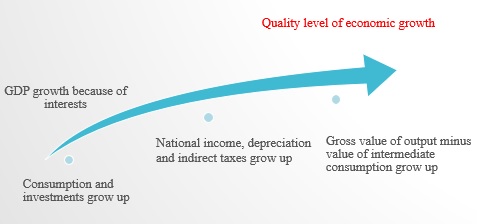 The essence of economic growth is presented in Fig. 5. Traditionally, economic growth is the mirror of GDP growth. At the same time, irrespective of the approach used to calculate GDP (whether it is cost or value added based (production method), the result is the same value.