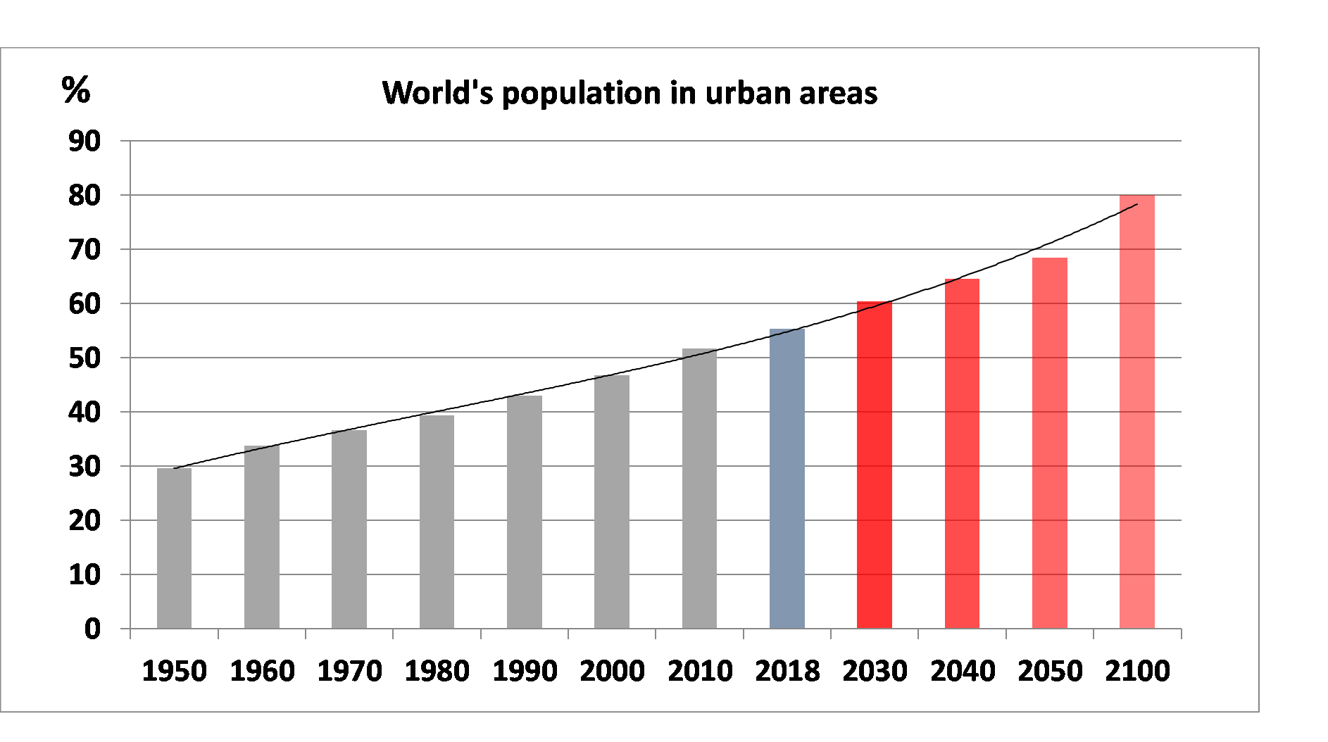 Fig. 1. Development of the world’s population residing in urban areas [1]