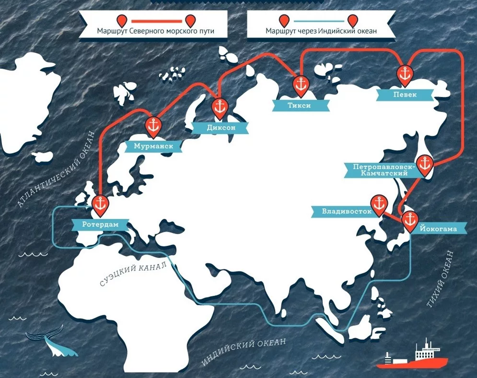 В настоящее время глобальный, а также осуществляемый, например, в рамках евразийского континента, грузооборот в большей степени обеспечивается использованием морских путей, фактически контролируемых США и Великобританией, как в части поставок энергоносителей и сырья, так и поставок конечных товаров. Россия набирает темпы развития в этой области [3]. На Севере у РФ имеется значительное географическое преимущество, подкрепленное внушительным оборонным потенциалом. Самое главное Россия единственная страна, располагающая мощным ледокольным флотом, чтобы уверенно справляться с задачей поставки грузов из Азии в Европу (и обратно), из России в другие регионы.