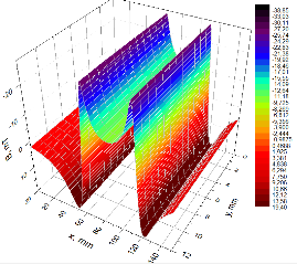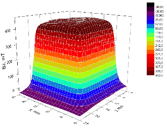 Расчет магнитных полей для системы из n (по оси x) рейстрековых катушек с сердечником проводится с использованием метода суперпозиции решений (11), сдвинутых по оси х на соответствующее расстояние с центров катушек от геометрической оси симметрии: