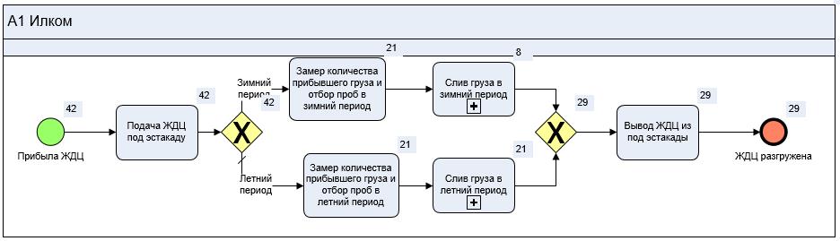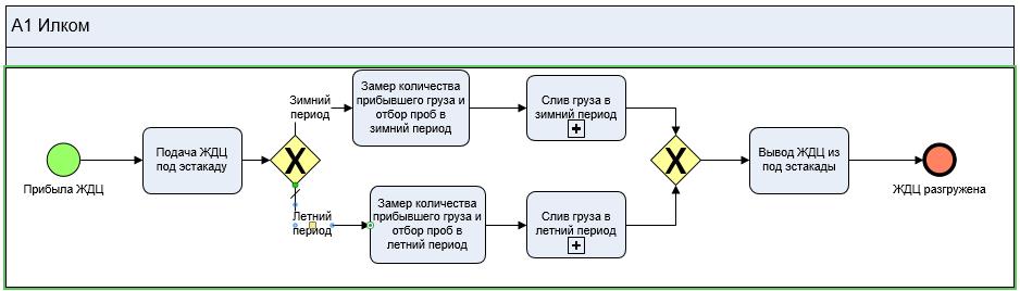 Модель данного бизнес-процесса приведена на Рис. 1. Процесс подготовительных мероприятий и непосредственно самого слива встроен как декомпозиция в данную модель.