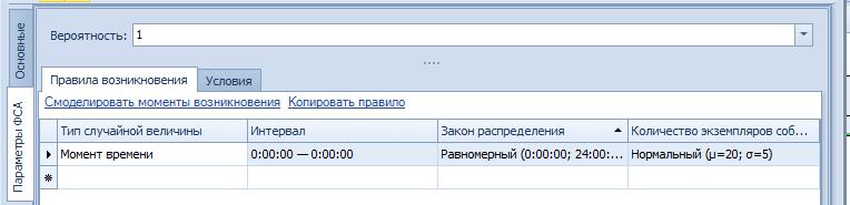 Рис. 4. Моделирование моментов возникновение экземпляров стартового события