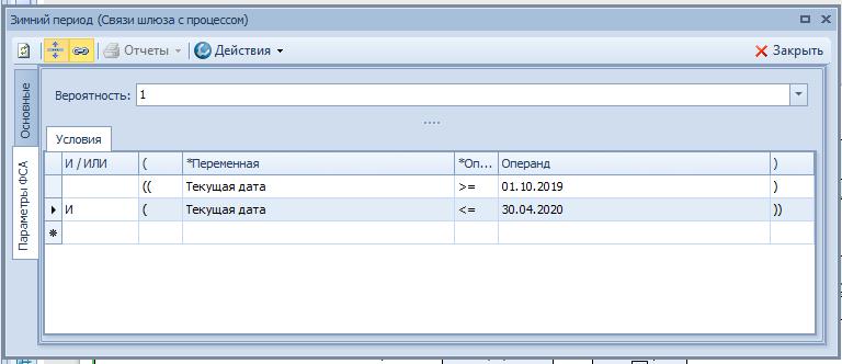 Рис. 5. Свойства условия Зимний период
