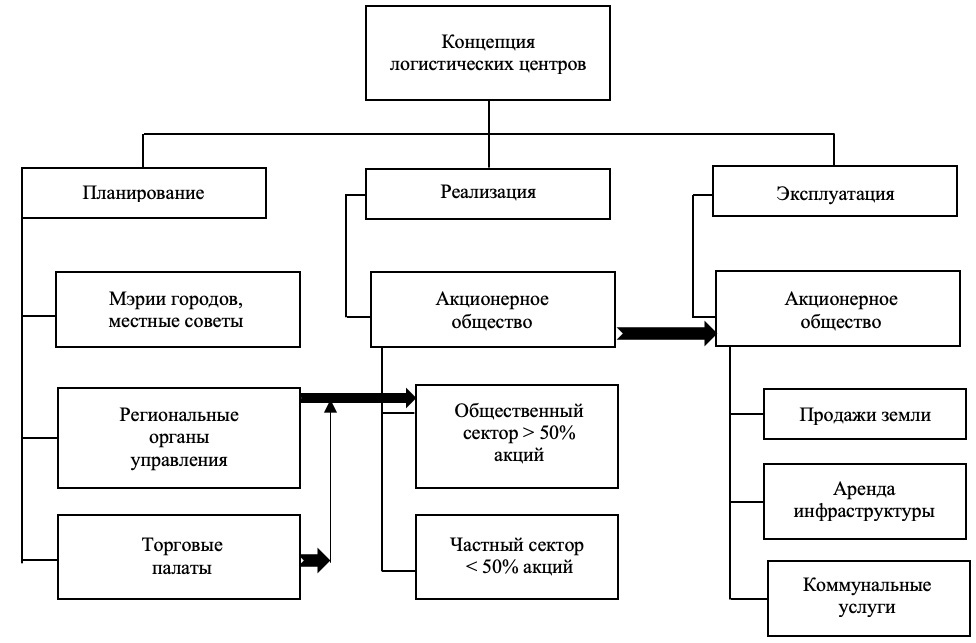 - применение государственно-частного партнерства при формировании и развитии логистических центров, так как при низкой степени участия государства происходит неравномерное распределение логистических центров по территории страны, строительством которых заняты отдельные компании. То есть именно государство должно взять на себя обязанности координатора по распределению логистических и транспортных объектов;