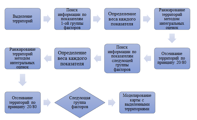 В конце должно остаться одна или ряд территорий, обладающих наилучшими показателями.