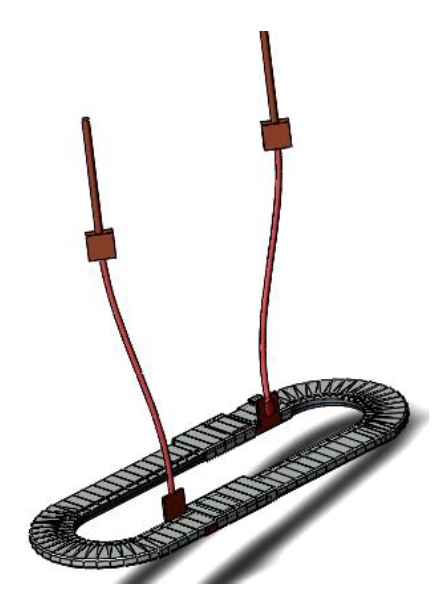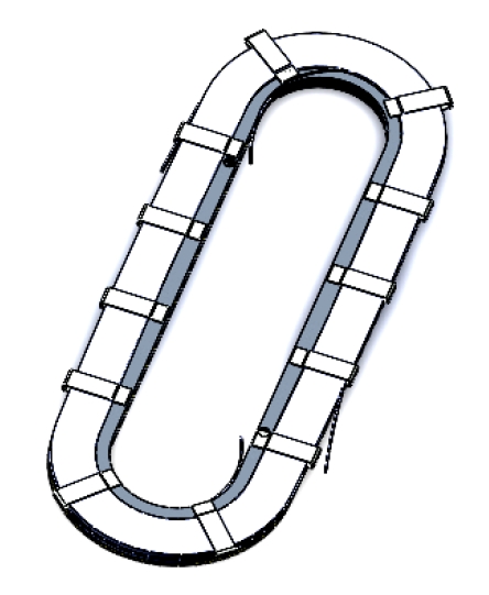 Изготовленный макет сверхпроводникового модуля подготовлен для испытаний на действующем демонстрационно-испытательном стенде, где левитация осуществляется за счет взаимодействия магнитного поля сборки постоянных магнитов, установленных на платформе, с полем аналогичных сборок, расположенных в путевой структуре. Компактный ВТСП модуль замещает две сборки постоянных магнитов, установленных на платформе. Модель демонстрационно-испытательного стенда статической левитации представлена на рис. 15.
