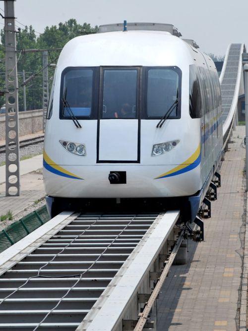 The medium-low speed maglev train aimed to pratical applications was constructed by Tangshan railway vechile co., LTD, Beijing holding magnetic levitation technology development co., LTD, and National University of Defense Technology in May 13th, 2009. And then the test works were carried out immediately. The train has 3 units. It is composed of two side vehicles with the same structure and an intermediate vehicle. The operation speed is about 100-120km/h. the side vehicles can carry 100 persons, whereas the intermediate vehicle can carry 120 persons. The service life is over 25 years. The train is supplied by DC 1500V. the maximum slope gradient is 70‰, the truning radium of the line is 50-100m.
