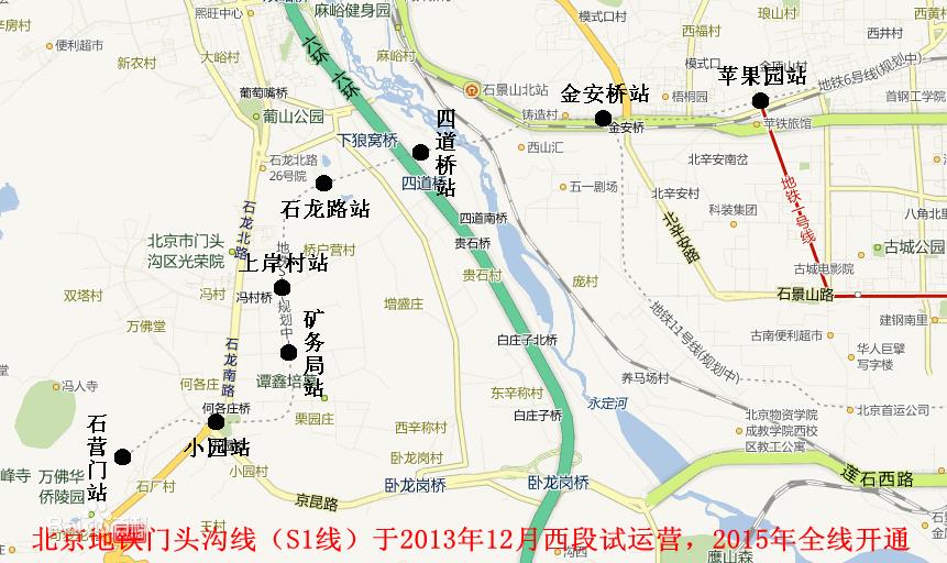 Fig. 10, Beijing subway line S1 starts from the Cishousi station in the east connected with Beijing subway line 6, passes through Haidian and Shijingshan, and ends up in the Shimenying station in the west. The entire line is 19.985km. Beijing subway line S1 was supposed to start in Dec. 28th, 2010. But, the construction was ceased due to the problems such as the selection of the trains, disagreement of the environment protect, and the resettlement of the residents lived along the planning line. The medium-low speed maglev demonstration line (S1) project was approved by the Beijing city development and reform commission (NDRC) in Oct. 2013. And then the stagnant project were returned to work. The whole project is expected to complete in 2015.
