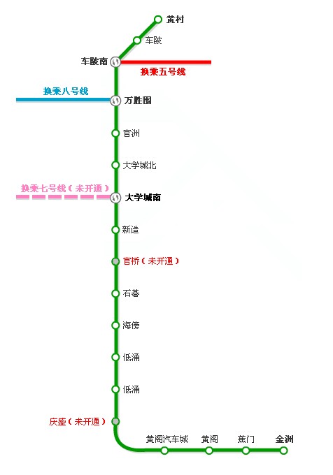 The south section of Guangzhou metro line 4 was started in Jun. 19th, 2013 and it is expected to be completed in 2016. The south section line starts from Jinzhou station and the terminal is the Nansha port, as shown in Fig. 19. The line is 12.6km; all the lines are constructed underground. The train is the same with that operating in Guangzhou metro line 4. The max operation speed is 90km/h.