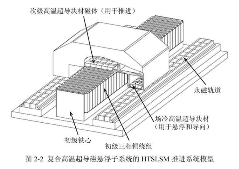 Based on the Century HTS maglev train, the scholars in China proposed another comprehensive HTS maglev train system, as shown in Fig. 23. The primary is developed by copper wires and is installed along the rail tracks. The secondary is constructed by using HTS bulk arrays. The HTS bulk array in the center interacts with the primary coils and produced the thrust to propel the train. The HTS bulk arrays in the side of the rail interact with the permanent magnets installed in the rails to produce the levitated force and the guided force.