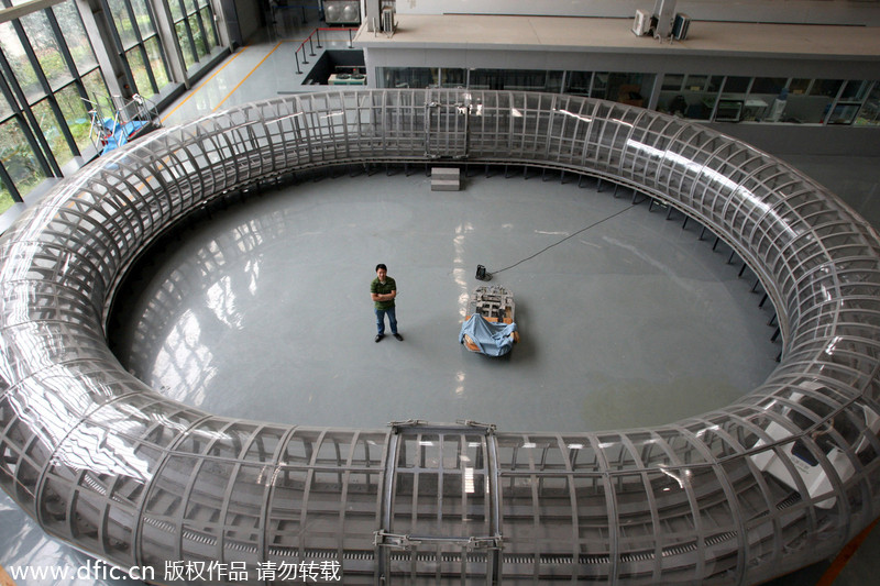 Fig. 25. Test facilities of the evacuated tube HTS maglev train