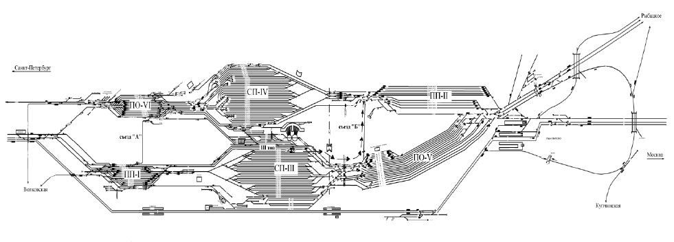Станция ПСМ является основной, внеклассной сортировочной станцией Санкт-Петербургского железнодорожного узла, представляет собой двустороннюю станцию с последовательным расположением парков прибытия, сортировочной горки, сортировочного парка и парка отправления в каждой системе.