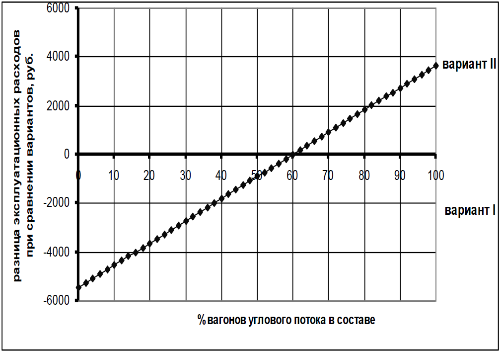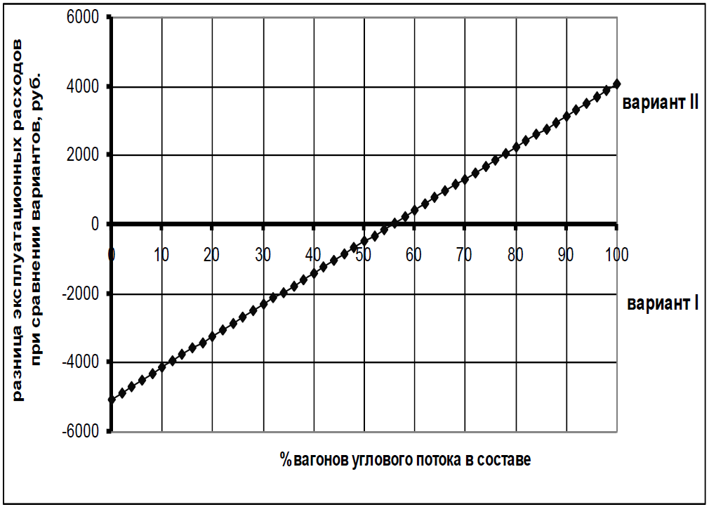 Рассмотрим, как при этих вариантах работы с вагонами углового потока будут изменяться эксплуатационные расходы.