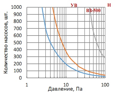 - один постоянно работающий насос НВЗ-500 может обеспечить вакуум в тоннеле менее 40 Па;
