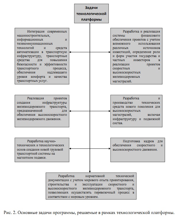 Инструментом реализации указанных государственных приоритетов призвана стать технологическая платформа (рис. 2), инициированная ОАО «РЖД» и являющаяся составной частью программы инновационного развития компании.