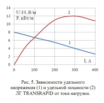 Зависимости удельного напряжения и мощности ЛГ TRANSRAPID [9] представлены на рис.5.