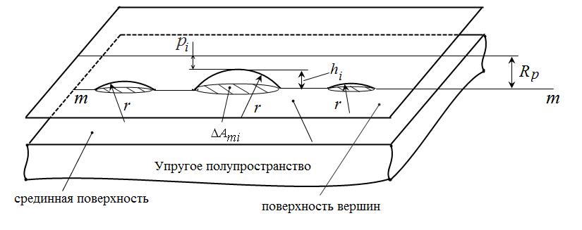 где - номинальная площадь касания; - параметры опорной кривой шероховатой поверхности [2].