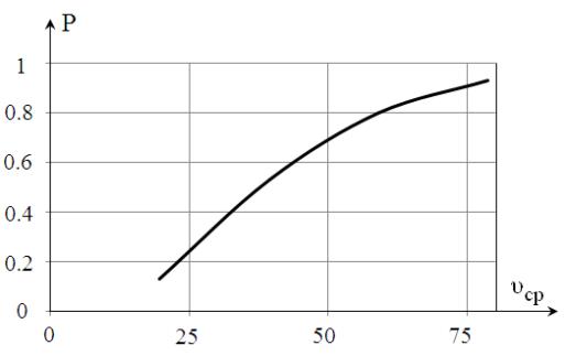 По предложенной методике была получена зависимость вероятности сбоя P от концентрации частиц пыли на контактных поверхностях νc (количества частиц пыли на 1 мм2 контактной поверхности). Сбой фиксировался по величине переходного сопротивления. Если переходное сопротивление превышало номинальное значение в два и более раз, то условно фиксировался сбой. Расчеты выполнялись методом статистических испытаний. При этом случайными величинами принимались диаметры частиц пыли, координаты расположения пылинок и высоты микровыступов. Результаты расчета приведены на рис.5.