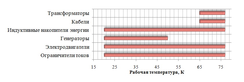 Как видно из графика, приведенного на рисунке 1 температурные диапазоны большинства устройств с применением современных высокотемпературных материалов укладываются в азотный диапазон.
