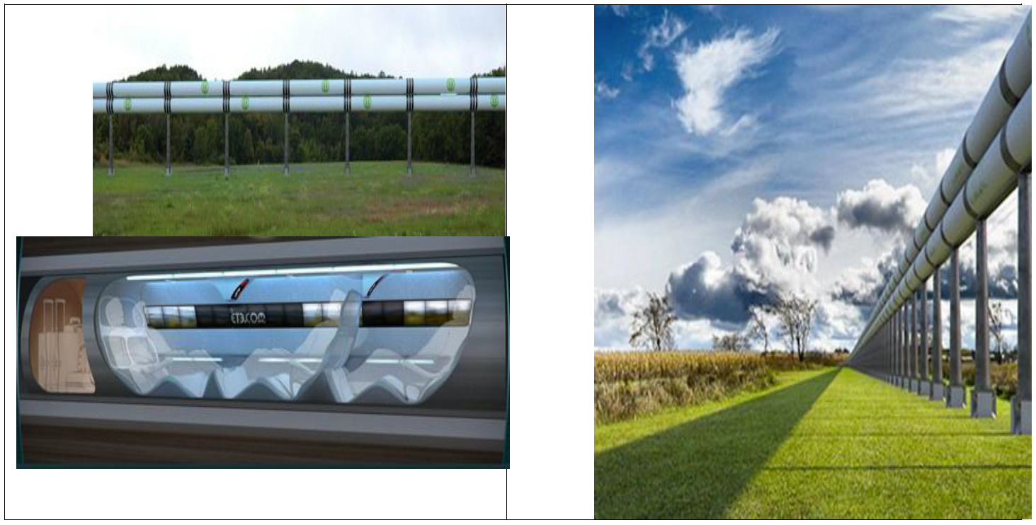 В основе программы лежит магнитолевитационная транспортная технология «вакуумной транспортной трубы». Транспортное средство, представляющее собой капсулу в виде герметичного модуля небольшой вместимости, обладая левитационными качествами, разгоняется с помощью линейного синхронного двигателя до номинальной скорости и далее передвигается в трубе к пункту назначения без дополнительных затрат мощности. В трубе, из которой выкачан воздух, вследствие чего практически нет аэродинамического сопротивления, можно достичь скорости 1000 км/ч и даже сверхзвуковые – до 8000 км/ч. Вакуумная транспортная труба (две трубы – в прямом и обратном направлении) прокладывается под землей либо на эстакаде (рис. 3).