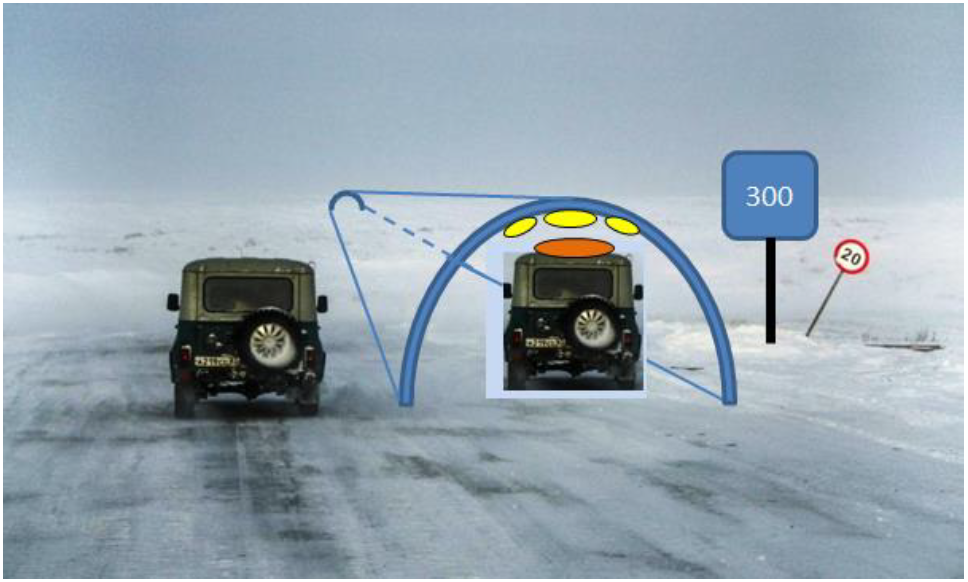 Арочная эстакада позволит обеспечить перемещение автомобилей нормальных габаритов, в верней части которых закреплены источники магнитного поля, что показано на рис. 5.